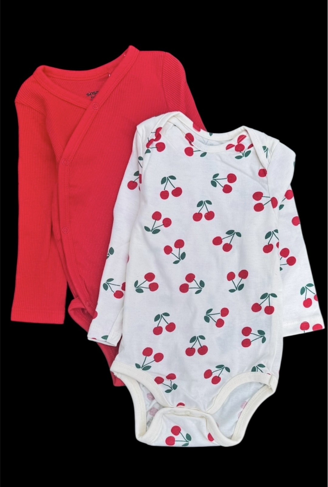 Бежевий боді виготовлений з бавовни, червоний - з трикотажу рубчик (мустанг) та застібається на кнопки по всій довжині.