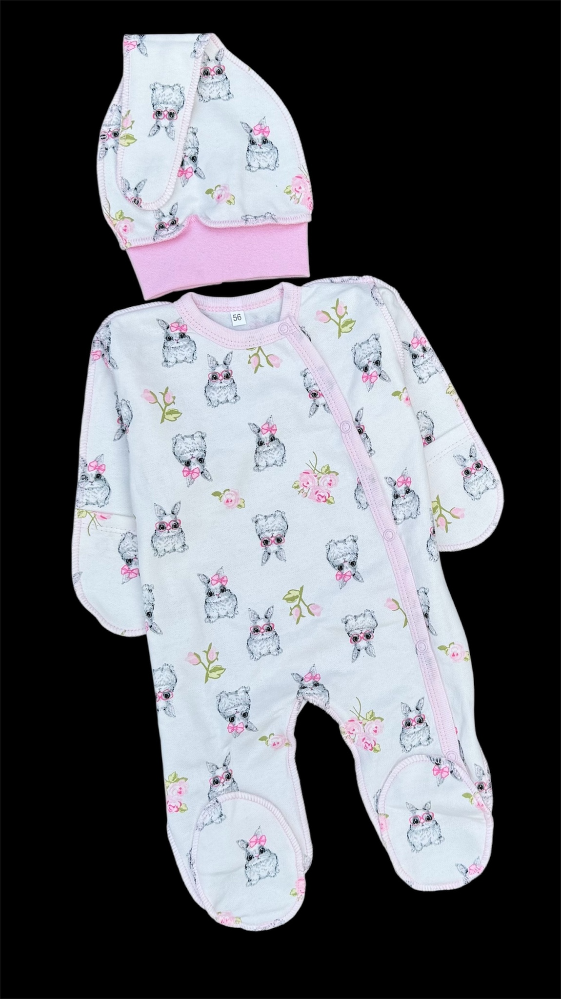 На рукавах комбінезона манжети-антицарапки, застібка - зручна кнопочка, щоб швидко переодягнути малюка.