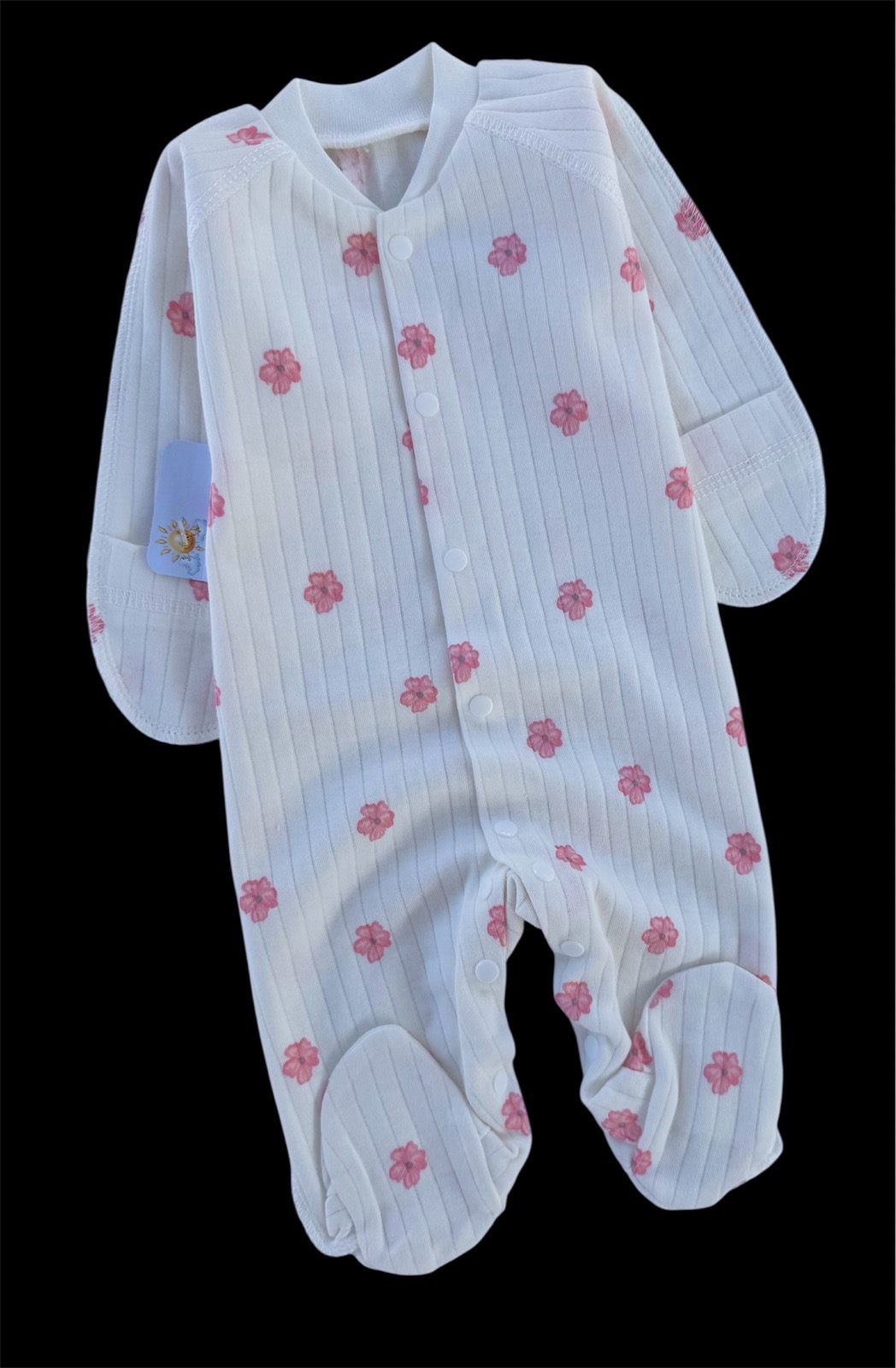 Ручки із вшитими анти-царапками, можуть бути як відкриті, так і закриті за потреби. Застібки - зручні кнопочки, щоб швидко переодягнути малюка.