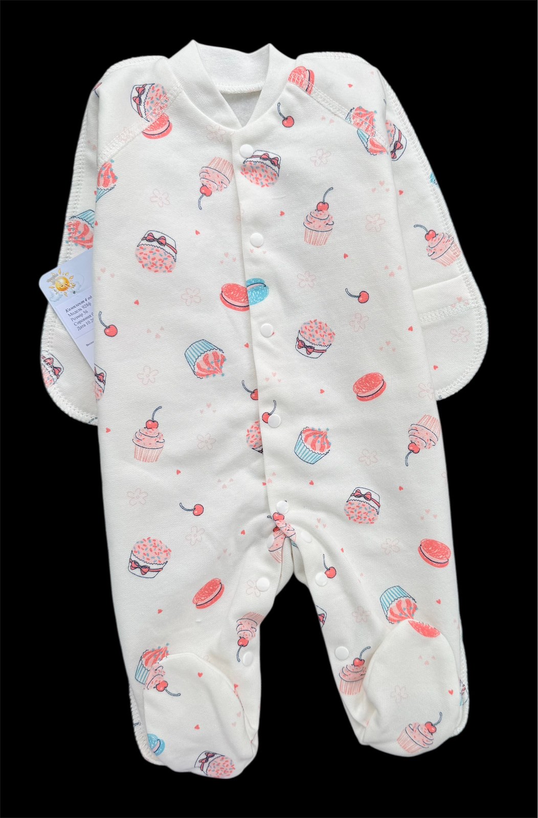 На рукавах комбінезона манжети-антицарапки, застібки - зручні кнопочки, щоб швидко переодягнути малюка.