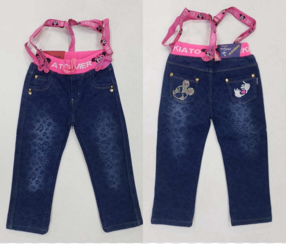 Пояс на еластичній резинці гарантує зручну посадку, а функціональний шнурок дозволяє легко регулювати об'єм талії. Джинси мають зручні кишені спереду та ззаду. Декоровані вишивкою Мінні та стразами , що додає образу оригінальності.