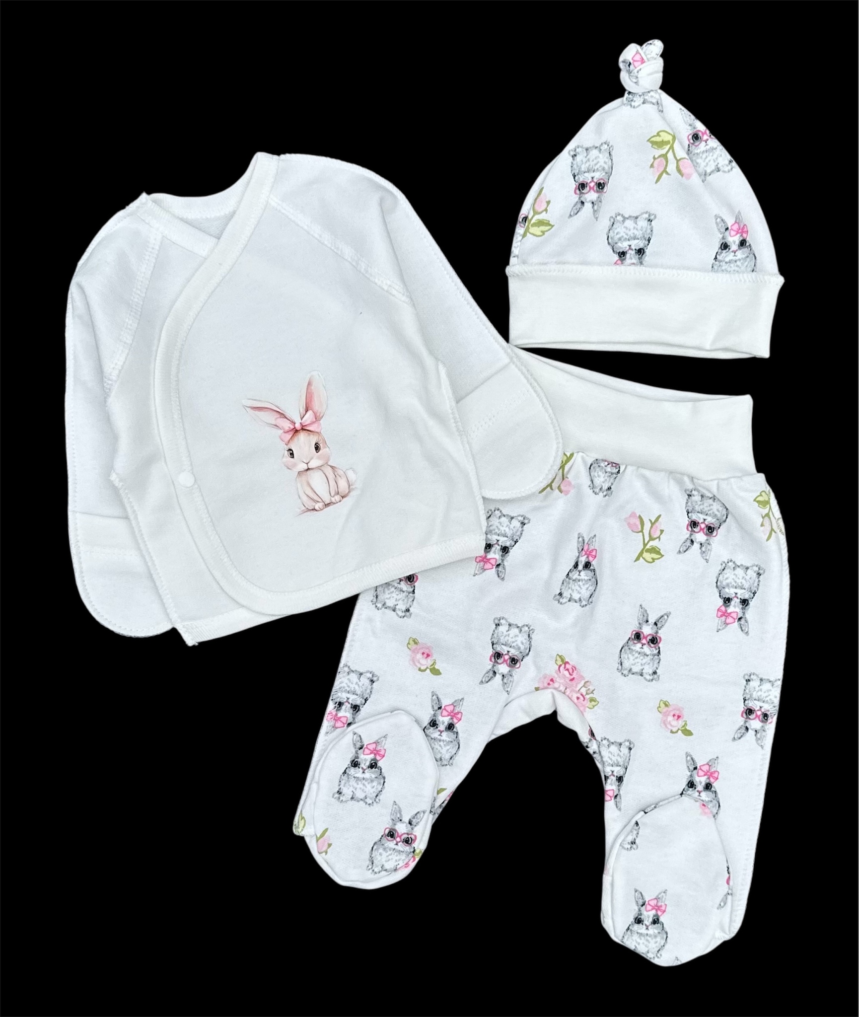 Комплект 3в1: льоля, повзунки, шапочка "Зайчики", футер ТМ “Happy ТoТ” (56 см)