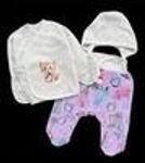 Комплект складається із чоловічка, сорочечки (льолі), повзунків та шапочки. Виготовлений із натуральної тканини - футер (бавовна з начосом). Футер - ніжне тепле полотно, яке добре пропускає повітря і відмінно вбирає вологу.