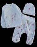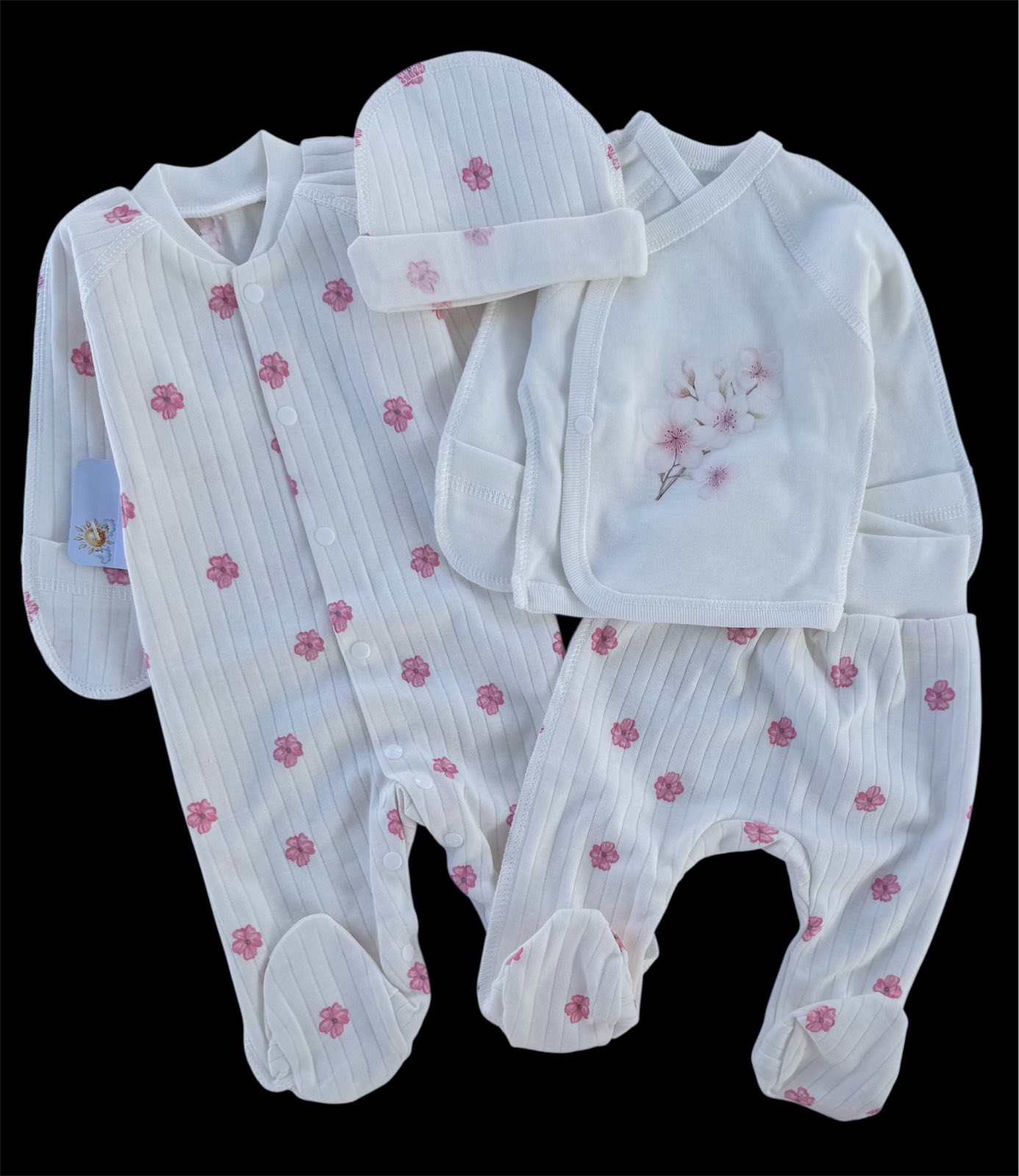 Комплект 4в1 для новонародженого малюка, складається із чоловічка, сорочечки, повзунків та шапочки.
