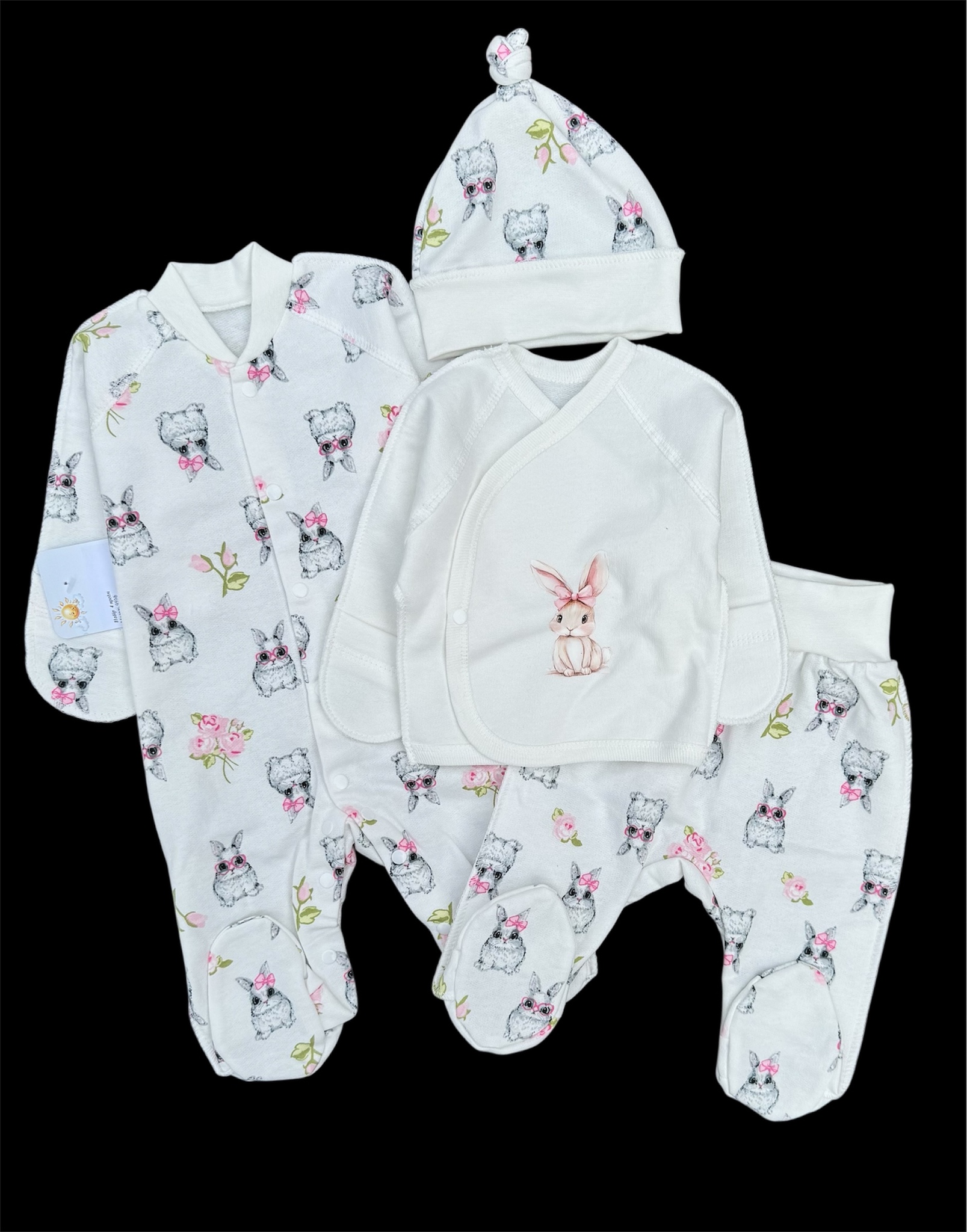 Комплект 4в1 складається із чоловічка, сорочечки, повзунків та шапочки.