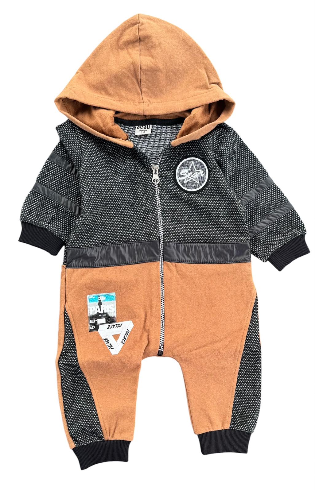 Стильний і зручний комбінезон для малюка — чудовий варіант для прогулянок у прохолодну погоду та щоденного носіння. Модель має капюшон і зручну блискавку по всій довжині, що дозволяє швидко та легко одягати дитину.