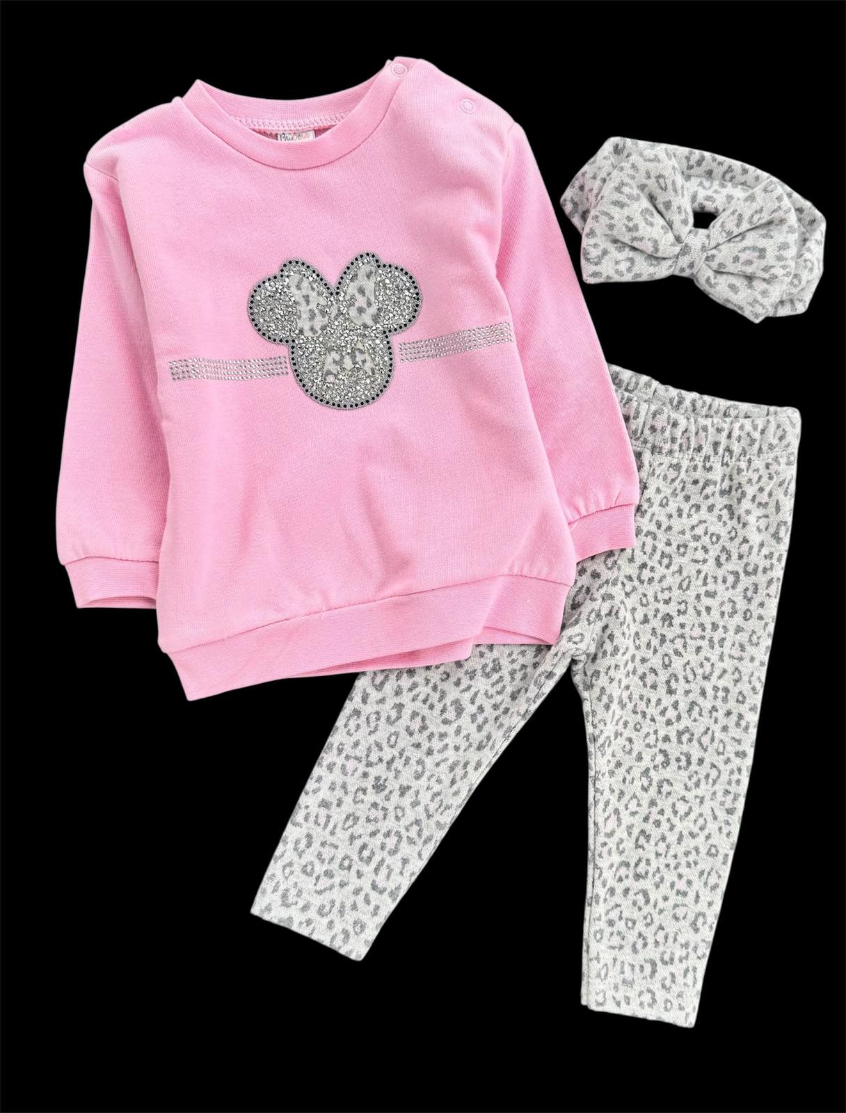Милий та зручний комплект для маленької модниці. Костюм складається зі світшота, штанців та пов’язки на голову, що створює гармонійний та стильний образ. М’яка тканина приємна до тіла, добре пропускає повітря та забезпечує комфорт протягом усього дня.