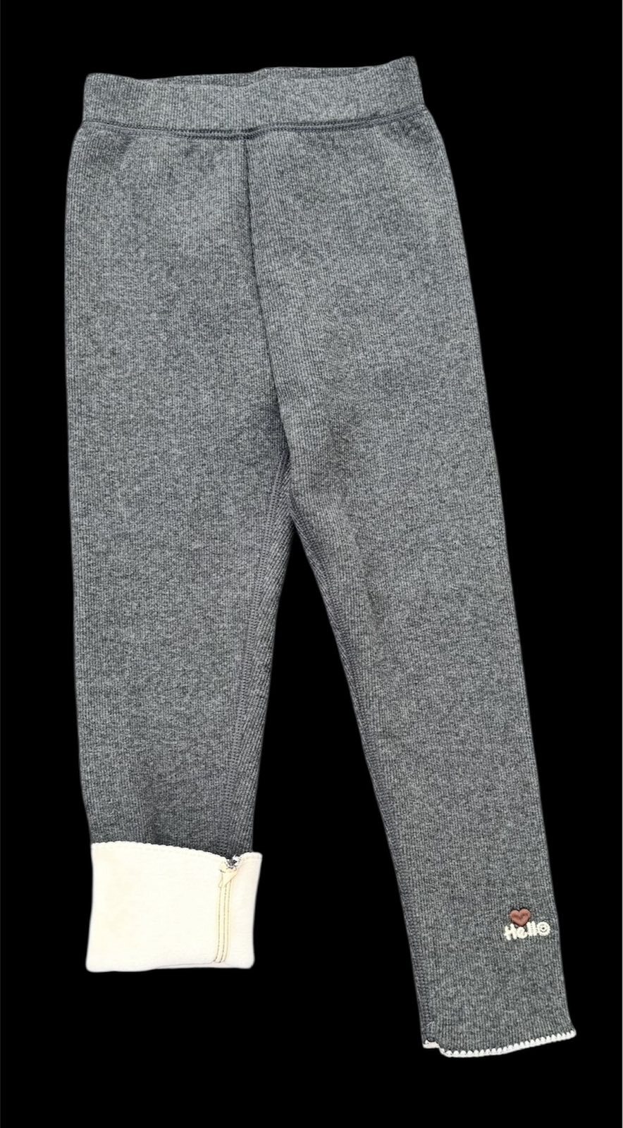 Зручні теплі лосини. Утеплені бавовняною махрою. Дуже м'які та приємні на дотик. Висока посадка, широка еластична резинка, знизу обв'язані декоративним швом, декоровані вишитим написом та сердечком.