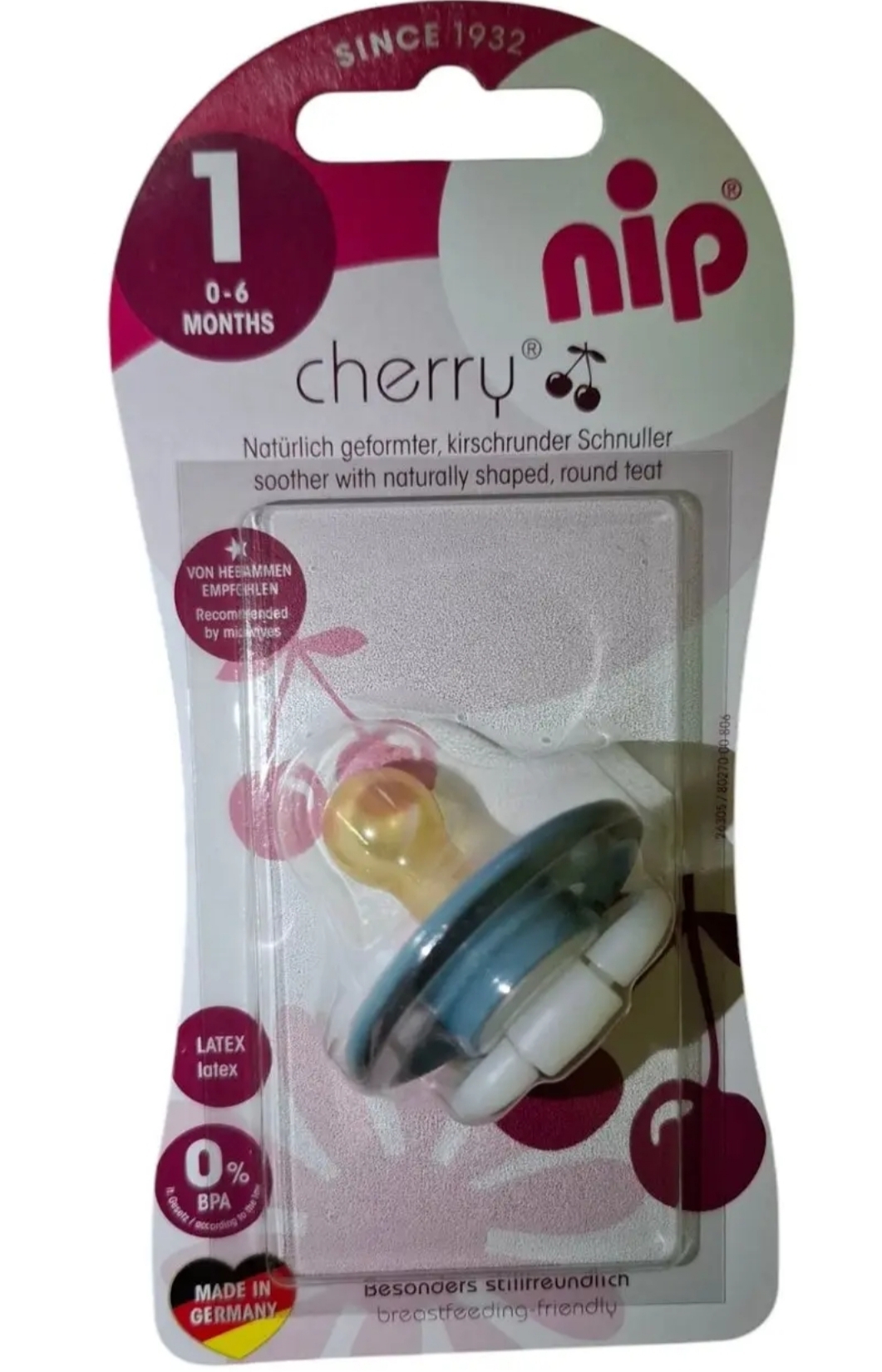 Пустушка Nip Cherry виконана з натурального латексу, що робить її м'якою і еластичною, максимально наближеною до природного смоктання грудей. Кругла форма соски забезпечує комфортне відчуття для малюка, а кільце дозволяє зручно тримати та прикріпити пустушку.